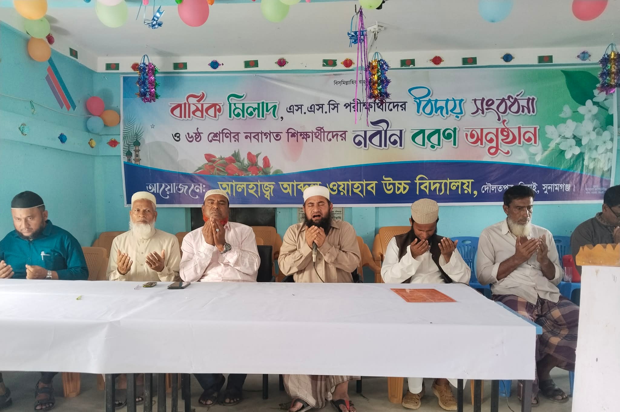 আলহাজ্ব আব্দুল ওয়াহাব উচ্চ বিদ্যালয়ে নবীন বরনের সাথে এস এস সি পরীক্ষার্থীদের বিদায় ও দোয়া মাহফিল অনুষ্ঠিত