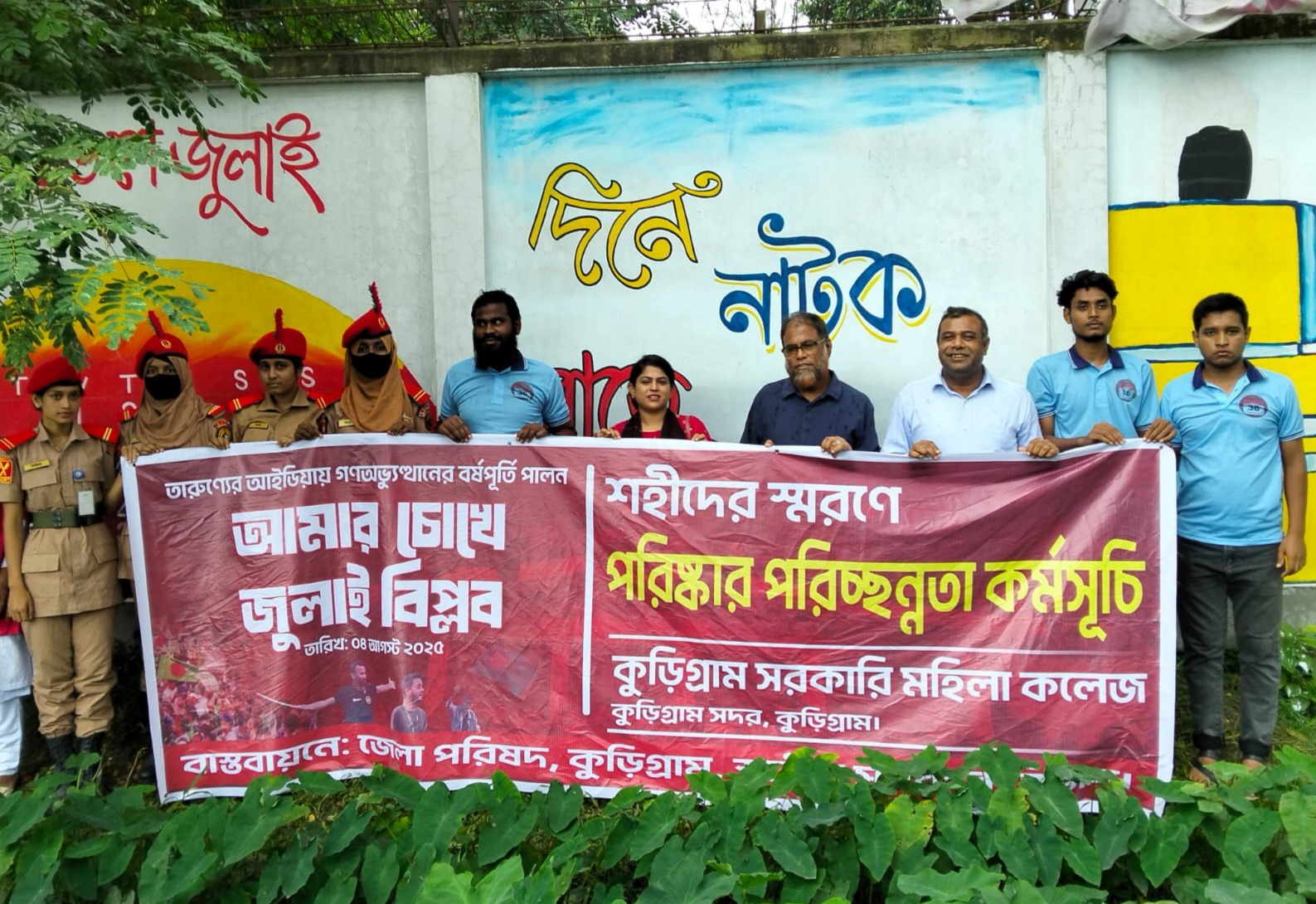 তারুণ্যের আইডিয়ায় গণঅভ্যুত্থানের বর্ষপূর্তি পালন “আমার চোখে জুলাই বিপ্লব” জুলাই গণঅভ্যুত্থানের শহীদদের স্মরণে কুড়িগ্রামের সরকারি মহিলা কলেজেপরিষ্কার-পরিচ্ছন্নতা ও বৃক্ষরোপণ কর্মসূচি পালিত হয়েছে।
