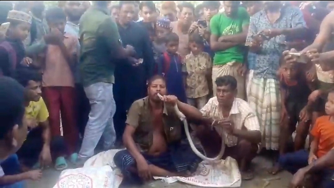 কুড়িগ্রামে সাপুড়ের প্রাণ কেড়ে নেয়া জীবন্ত সাপকে কামড়িয়ে চিবিয়ে খেলেন অন্য সাপুড়ে