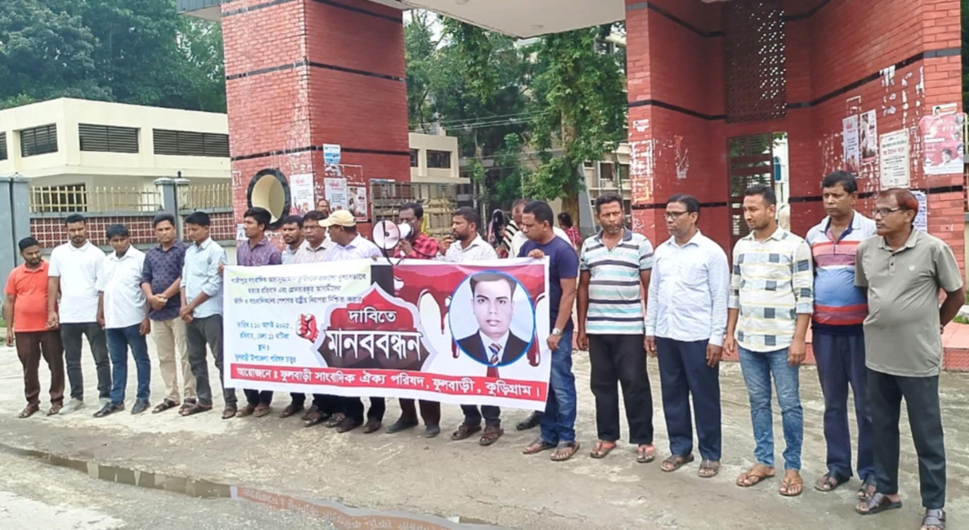 ফুলবাড়ীতে সাংবাদিক তুহিন হত্যার প্রতিবাদে মানববন্ধন