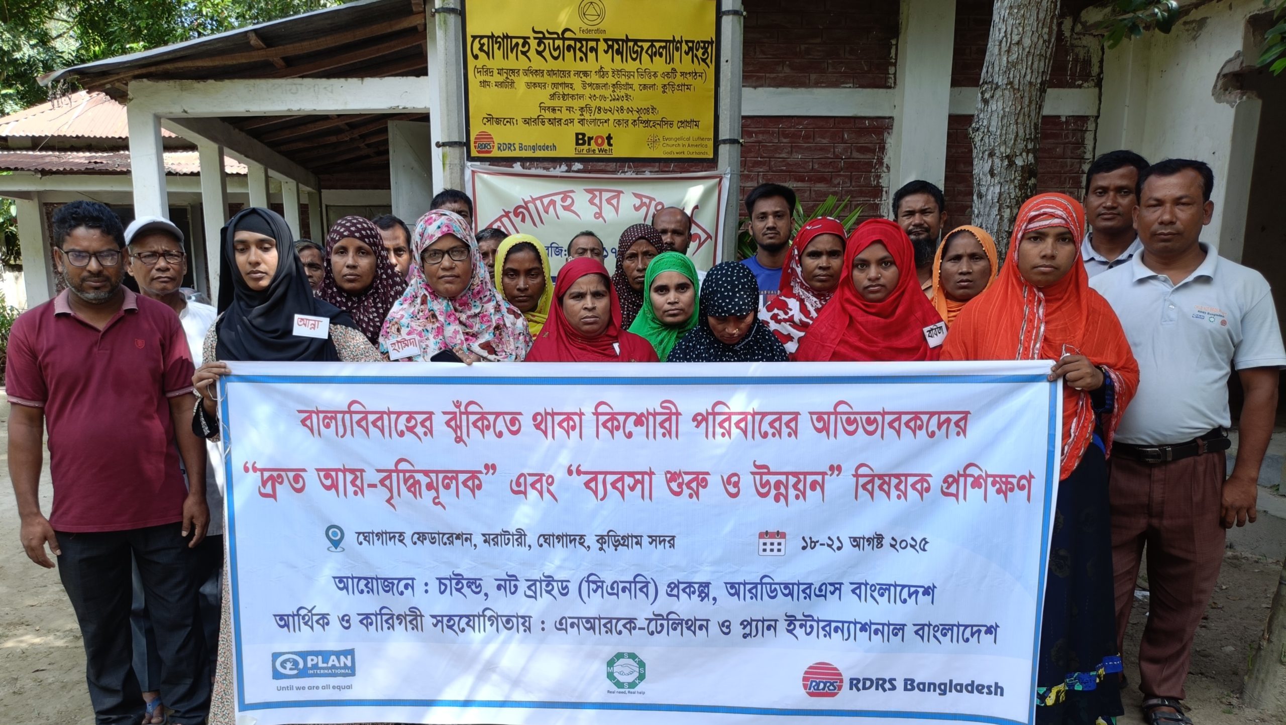 কুড়িগ্রাম প্রতিনিধিঃ বাল্য বিয়ের ঝুঁকিতে থাকা কিশোরী পরিবারের অভিভাবকদের ‘দ্রুত আয় বৃদ্ধিমুলক’ এবং ‘ব্যবসা শুরু ও উন্নয়ন’ বিষয়ক প্রশিক্ষণ
