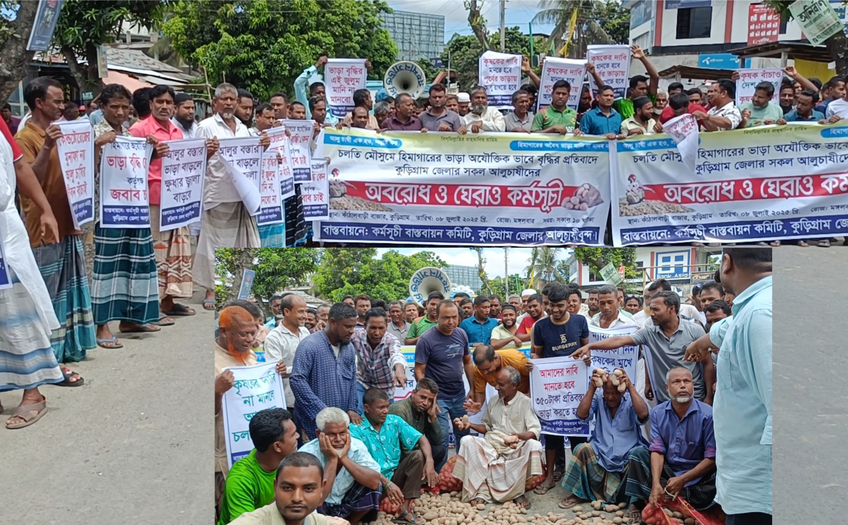 কুড়িগ্রামে হিমাগারে আলু রাখার ভাড়া বৃদ্ধির প্রতিবাদে রাস্তায় আলু ফেলে অবরোধ